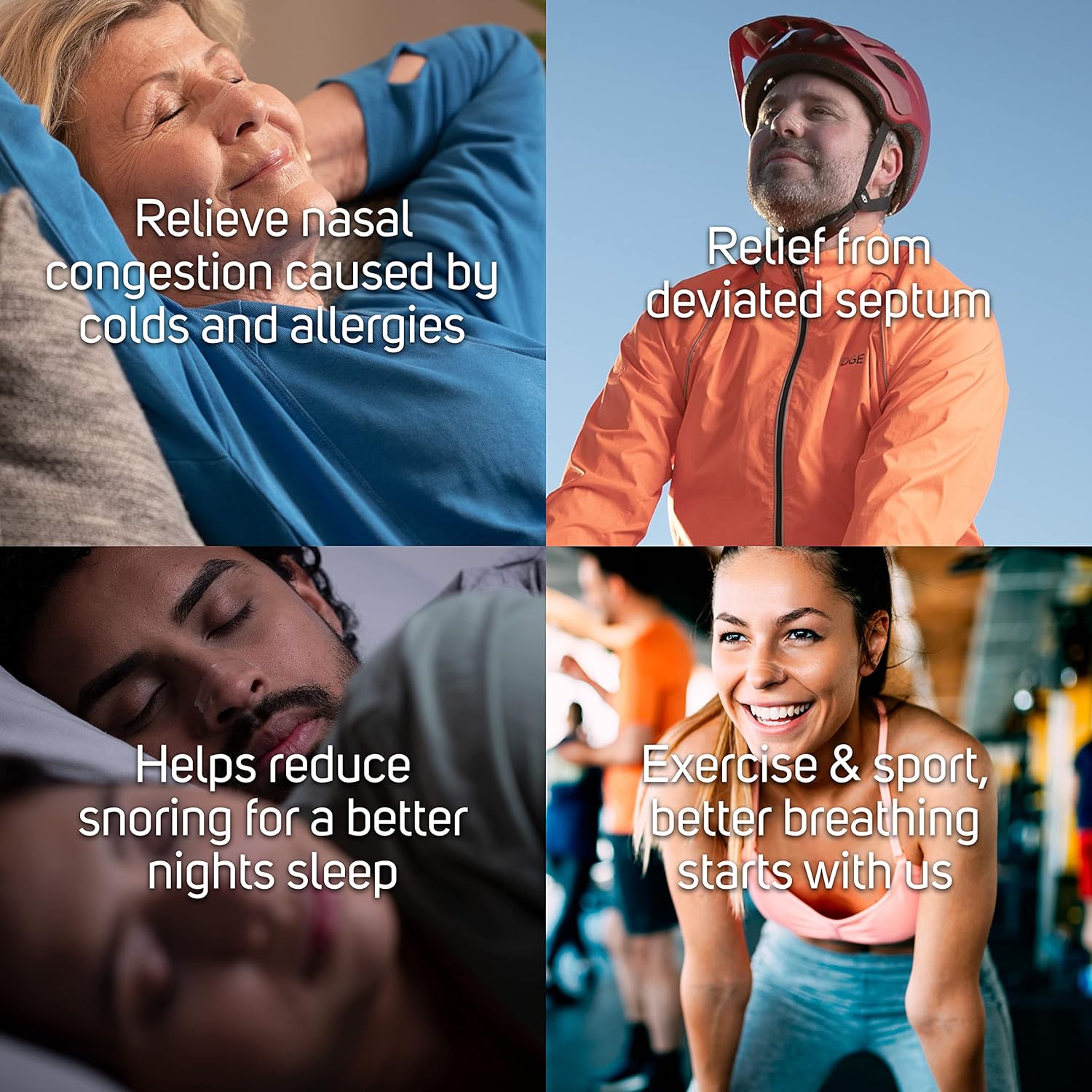 – Widely utilized during exercise and sports activities to enhance nasal airflow, facilitating better oxygen intake.