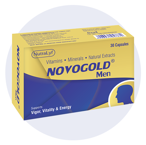 Novogold Men is a supplement specifically formulated with essential nutrients to support overall male health and help maintain both mental and physical performance.